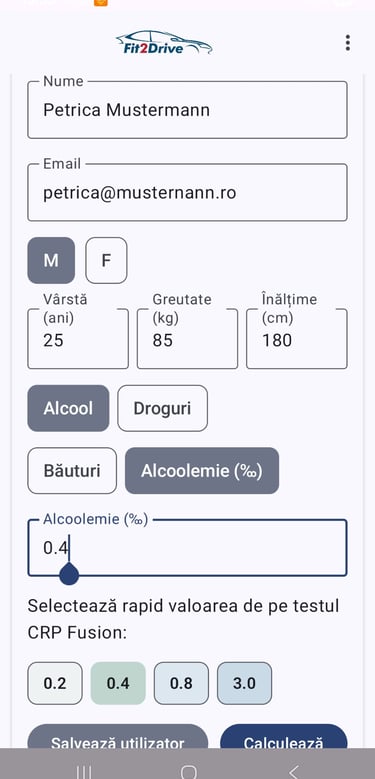 Aplicația CRP Fusion pentru Android calculează momentul probabil în care o persoană testată cu testele rapide Fit2Drive pentru alcool sau THC poate conduce din nou un vehicul. Aplicația însoțește utilizatorii pas cu pas printr-o reprezentare grafică a procedurii de testare și oferă recomandări practice pentru reluarea în siguranță a traficului rutier.